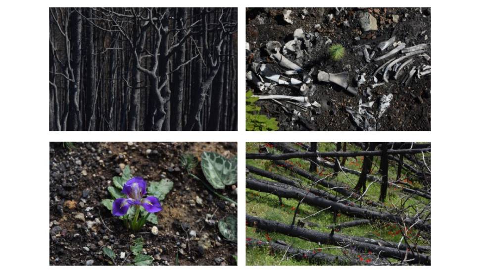 “Dans son travail, Maryvone Arnaud montre bien que là où un incendie se produisait en théorie et naturellement, toutes les N décennies, voir les N siècles, là, il arrive à se produire 4 fois par décennies” commente Charles Lemarchand. “La forêt n’a pas le temps de se reconstituer et au bout d’un moment, après plusieurs passages d’incendie sur le même endroit, le sol est complètement brûlé, la banque de graines au sol est également décomposée, on a donc une simplification de la flore qui s’installe et une forêt qui n’est plus fonctionnelle. C’est ce que montre cette exposition photo”.
