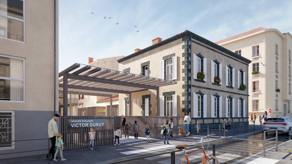 Le cabinet clermontois d’architectes MTA*, qui a œuvré sur plusieurs réalisations de bâtiments scolaires dans la région AuRA, a été choisi pour mener cette opération dont le coût est estimé à près de 7 millions d’euros. Il s’agira de faire du neuf avec du vieux pour absorber une hausse attendue des effectifs et remettre le bâtiment au goût du jour en matière d’économies d’énergie. L’isolation se fera par l’intérieur pour conserver les façades historiques du côté du domaine public, celle située rue d’Alsace reprenant même son aspect originel avec la démolition du bâtiment situé au-dessus de l’ancien préau et la reconstitution de baies.