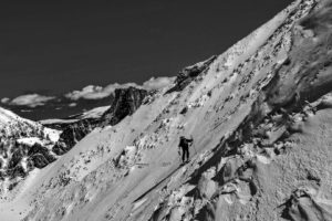 Partir à des heures improbables, chausser ses crampons et aller là-haut, tout là-haut où sa solitude n’est troublée que par sa respiration. Lever le regard vers ces pointes noires sortant du drap blanc de la neige. Plus c’est haut, plus c’est beau, alors grimper, grimper. Il ne reste plus que le crissement des crampons et là-bas le soleil caché mais fier comme vous de la beauté du lieu…