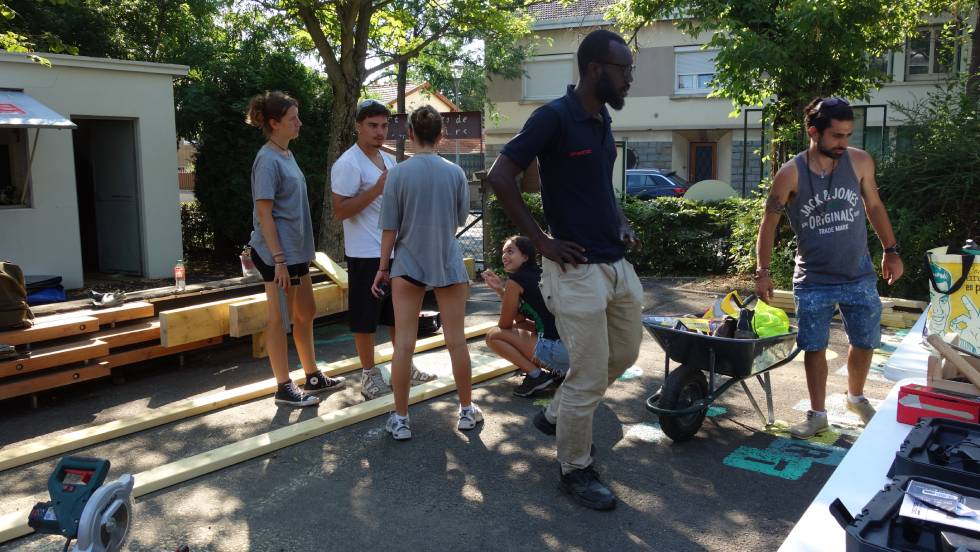 L’action se déroule au square des Liondards. Arrivé au terme des quinze jours qu’a duré le chantier, Fanny Fayolle de l’association Concordia situe le cadre : « On a accueilli des bénévoles de 15 à 17 ans, six sont originaires d’Espagne, de Turquie et d’Italie, six de différents coins de France et une bonne dizaine vient du quartier pour réaliser des meubles en bois. Une partie des meubles restera-là, au square des Liondards, l’autre partie ira au jardin partagé attenant à la Maison Marie-Marvingt. »