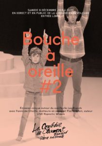 La prochaine émission en live de la web radio Bouche à Oreille de la Comédie de Clermont se déroulera samedi 8 décembre, depuis la Librairie les Volcans, boulevard François-Mitterrand à Clermont. Animée par Marie Serve de Radio Arverne, elle sera articulée autour du spectacle Les Grands, proposé les 5, 6 et 7 décembre à la Maison de la Culture. La metteuse en scène Fanny de Chaillé s’appuie, en l’occurrence sur un texte du poète-philosophe Pierre Alferi et convoque sur scène les générations différentes: enfants, adolescents, adultes. Neuf individus au total pour une rencontre qui flirte habilement entre fiction et réalité et parle avec un mélange de brio, de délicatesse et d’humour ce que l’on fut, de ce que l’on est, de ce que l’on sera… peut-être. Pierre Alferi, romancier, traducteur, poète et essayiste, et Fanny de Chaillé, plasticienne, chorégraphe, performeuse et metteuse en scène, répondront aux questions de la journaliste.