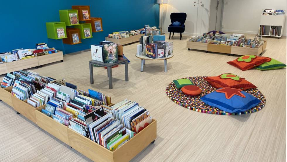 Ce chantier d’extension a également été l’occasion d’entreprendre des travaux de modernisation des lieux, pour en améliorer les conditions d’accueil. Sol, peinture, éclairage ont ainsi été repris et l’espace, réaménagé en différents points, correspondant davantage aux usages d’aujourd’hui : points d’accueil plus mobiles, espace enfants plus accueillant… De nouvelles étagères, plus basses que les précédentes, offrent par ailleurs plus de luminosité, une meilleure visibilité et facilite le repérage des différents espaces.