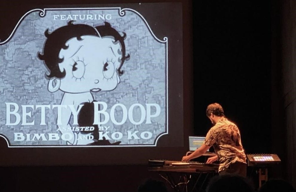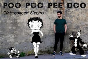 Sur scène, Thibault Cohade, à travers un ciné-concert porté par des musiques électroniques, permet au public de redécouvrir cette figure iconique et créative. Sur les films originaux de Betty Boop, la musique jazz se révélait omniprésente. Aujourd’hui, les musiques jouées sur des instruments électroniques étant devenue une véritable culture populaire, on peut imaginer que l’héroïne s’en serait emparée pour accompagner ses aventures. C’est en tous cas le postulat de Thibault Cohade, formé au Conservatoire national de musique et de danse de Lyon, qui n’hésite pas à explorer l’ambiguïté acoustique des musiques instrumentales et électroniques. Particulièrement habile dans les performances live, le musicien multiplie également les collaborations dans le domaine du cinéma. Pour Poo Poo Pee Doo, il mixe, sample, autant ses musiques originales que les paroles, tandis que défilent sur l’écran six court-métrages de Betty, réalisés entre 1932 et 1938. Un spectacle singulier, audacieux et plein de virtuosité.