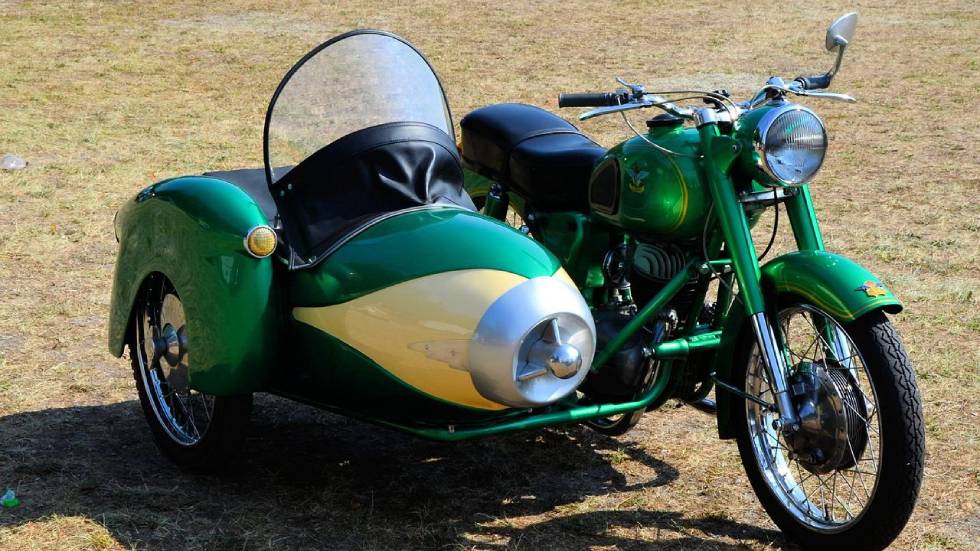 C’est en 1892, que le français Jean Bertoux, chef armurier de ligne à Fontainebleau, présente un brevet pour un siège suspendu, une nacelle, pouvant être attelée à un vélo, qu’il nomme tout simplement “siège de côté”, sidecar en Anglais. Sur les premiers modèles, le passager est assis dos à la route, une incongruité corrigée l’année suivante avec un additif au brevet. Le passager assis dans le bon sens pouvait aussi actionner un levier pour entrainer la roue supplémentaire. C’est seulement dix ans plus tard qu’une nacelle apparait pour la première fois sur un deux roues motorisé. Généralement fabriquée en osier pour sa légèreté, la nacelle est surnommée “panier” un sobriquet toujours utilisé. Alors que les premières compétitions de sidecars sont organisée, l’armée s’intéresse à ses capacités utilitaires et l’utilise dès la Première guerre mondiale comme véhicule de liaison parfois même d’ambulance. Dans les années 50, alors qu’il est devenu un véhicule familial et touristique, il se retrouve concurrencé frontalement par les petites voitures bon marché, plus pratiques, et perd son statut de véhicule populaire. Seuls quelques motards modernes ne jurent aujourd’hui que par lui.