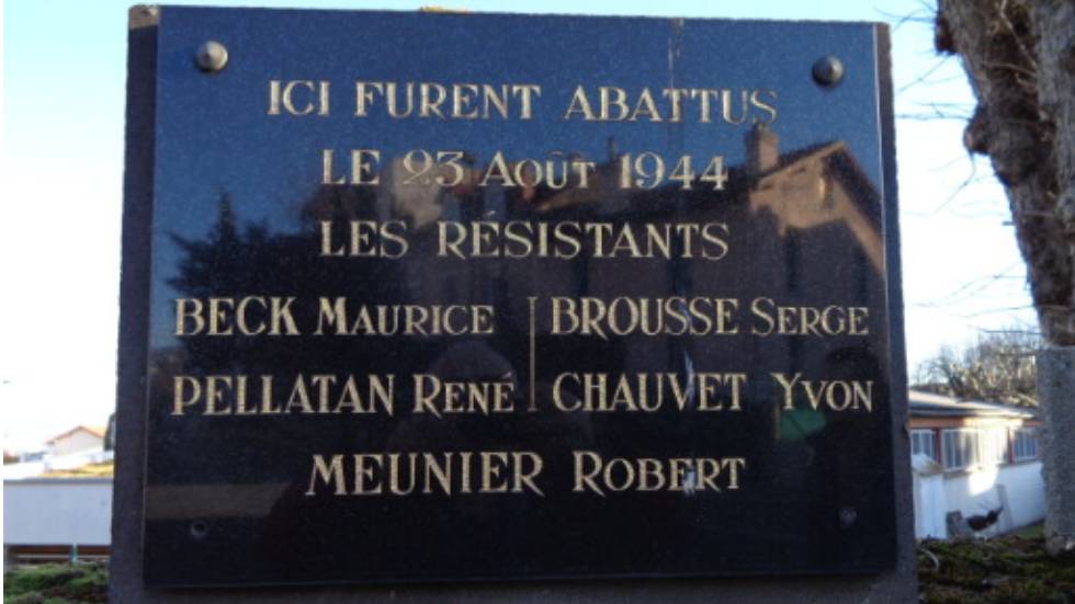 Le 23 août 1944, des résistants ont passé la nuit non loin de la Mairie de Chamalières, à charger du matériel dans des véhicules qui doivent rejoindre Murol. Alors qu’il s’apprête à sortir de la ville, le convoi est partiellement bloqué par des soldats allemands du 95e régiment SS, rue des Galoubies. Cinq jeunes appartenant aux FFI sont capturés mais les autres résistants, préfèrent poursuivre leur route afin de mener la mission à son terme. Maurice Beck, Robert Meunier, Yvon Chauveix, Serge Brousse et René Pelletan sont conduits dans une pièce du couvent des missions africaines pour un court interrogatoire avant d’être fusillés et enterrés sur place.