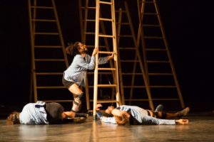 "No More", spectacle de la compagnie La Tournoyante, sera donné mercredi 31 juillet à Riom. Quatre acrobates y élaborent des jeux autour d'une échelle.