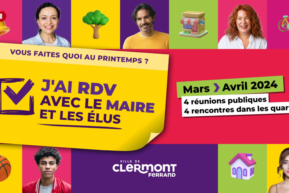 Du 12 au 20 mars, la Ville de Clermont-Ferrand organise quatre réunions publiques pour vous permettre de vous informer sur les projets municipaux finalisés, en cours et à venir, de poser vos questions directement au maire et aux élus, de faire remonter des difficultés que vous pouvez éventuellement rencontrer, etc.