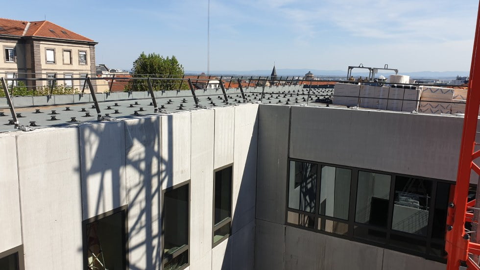 “C’est un projet mixte car on est sur une réhabilitation avec de l’existant très ancien du XVIIIe” explique l’architecte Hervé Charletty. “On a des morceaux de bâtiment en pierre, on a ajouté des planchers collaborants avec du métal et du béton et nous avons une extension en bois. CRR n’a pas hésité à proposer de construire en bois, pour une raison évidente de complexité du chantier en pleine ville. Les lieux sont exiguë, avec le bois on peut mettre en œuvre très rapidement, de manière silencieuse, sans gravois, ce qui n’est pas le cas pour la partie ancienne”. Le cabinet CRR maîtrise les projets de bâtiments peu gourmands en énergie (c’est à lui que l’on doit le nouveau centre sportif Edith-Tavert) un élément qui figurait dans le cahier des charges de l’ESC. “C’est aussi pour cela que l’on est là, parce que le développement durable est notre spécificité. Nous avons pu aller vers un bâtiment “classé E3C1” qui n’est pas extrêmement vertueux mais qui s’en approche, et vers une autre labellisation européenne le BREEAM niveau “very good” qui est attribuée essentiellement aux bureaux. C’est précisément la charpente en bois qui nous permet de descendre en carbone grâce à l’isolation et aux murs bois. Tout ce que l’on construit en neuf nous permet d’être extrêmement vertueux, cela compense le fait que l’on est un peu déficitaire sur le bâtiment réhabilité. On a beaucoup travaillé avec l’Architecte des Bâtiments de France et nous allons refaire les enduits à la chaux, mettre des menuiseries bois donc il faudra isoler par l’intérieur” précise Hervé Charletty.
