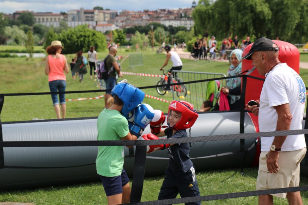 A l’occasion de cette nouvelle saison, plusieurs associations sportives seront également de la partie afin d’initier les participants à leurs diverses activités. Et pour entretenir la convivialité et l’esprit de compétition, un baby-foot humain sera à la disposition des participants, pour rejouer les ultimes parties de la Coupe du Monde entre amis. Une activité basée sur la convivialité comme nous l’explique Anne Mallet, responsable du projet : « Des activités à succès reviennent tous les ans, mais nous essayons aussi d’apporter de nouvelles idées. Les initiations sont bien sûr pensées pour apporter de la vie dans le parc, mais c’est aussi l’occasion de rapprocher les associations de la population locale, et pourquoi pas ensuite poursuivre à la rentrée de manière plus poussée. » Mais au-delà des « classiques », de nouvelles animations sont proposées, parfois même en rapport avec l’actualité : « Le baby-foot en structure gonflable est un atelier que les gens adorent ! C’est une bonne occasion de se défouler et en cette année de Coupe du monde mais c’est aussi la possibilité de pouvoir prolonger les jours de matchs ou refaire la compétition quand celle-ci arrivera à son terme ». Chaque joueur s’accroche à une barre pour fixer sa position dans structure gonflable, puis le ballon est ensuite projeté au milieu de ces “figurines” plus vraies que nature !