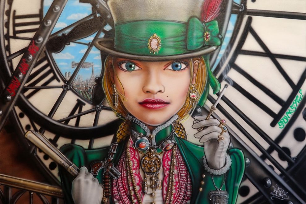 Aujourd’hui, les toiles de Géraud Delteil sont traitées intégralement à l’aérographe. Une technique à partir de laquelle il semble avoir trouvé sa pleine mesure. Comme un poisson dans l’eau…Dans un esprit street art, l’Auvergnat a développé son propre style, n’hésitant pas à jouer sur les transparences et les reflets. S’il baigne dans une culture populaire et effervescente, les femmes se révèlent ses héroïnes préférées. Il les peint assidûment, avec délice et fantaisie.
