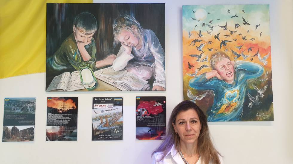 Justement, 7 Jours à Clermont a choisi de mettre en lumière une seule artiste sur les 320, une artiste dont la présence est plus que symbolique puisqu’elle est ukrainienne. Hanna Zinchuk a fait un périple de 3 000 km depuis la ville jumelle de Clermont, Krementchouk, une cité industrielle du centre de l’Ukraine, sur la rive gauche du Dniepr. Sa voiture lui a fait faux bond à Berlin, mais la solidarité lui a permis de terminer le voyage dans une petite fourgonnette pour qu’elle puisse enfin accrocher la quinzaine de tableaux qu’elle souhaitait présenter à Clermont pendant Les Arts en Balade. Elle est l’invitée du Centre Europe Direct du Puy-de-Dôme qui chaque année, propose un ou une artiste européen à participer à cette manifestation.