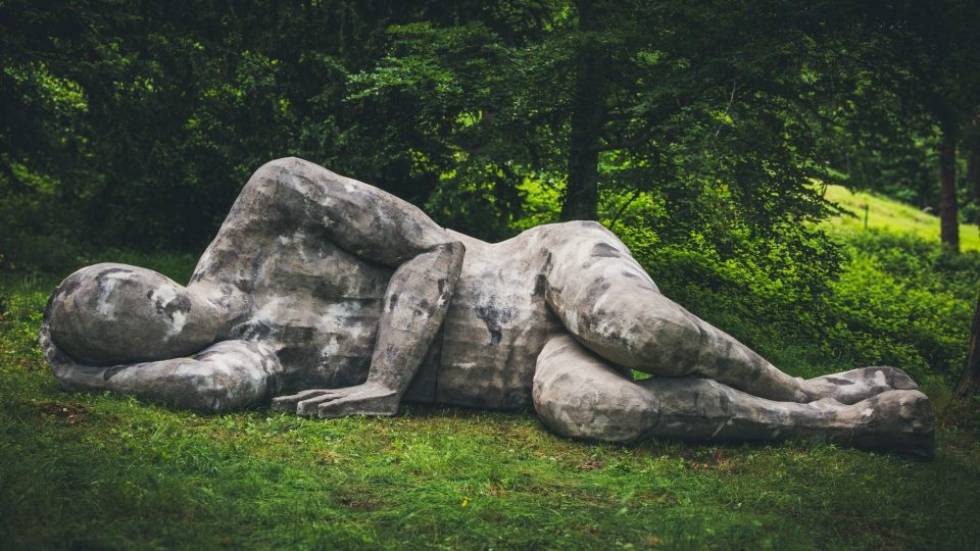 Le sommeil du Géant : Cyril André, sculpteur, France /parc du Prélong à Murol