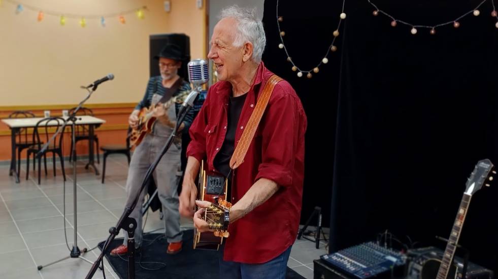 J.B : Cela fait plus de 20 ans que nous jouons ensemble. Nous avons fait aussi des tournées en Angleterre en enchaînant les kilomètres avec tout le matériel dans la voiture. Nous avons joué aussi dans des petits endroits de France, des petits villages comme ici ce soir à Bègues. Sur scène, nous nous laissons la place mutuellement, cela marche bien et Fred a une très belle technique de jeu corrélée à un superbe touché bluesy.