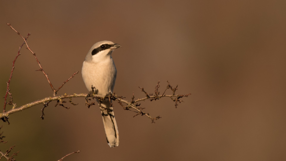 La Pie-grièche grise est un passereau plus petit qu’un merle, reconnaissable à son plumage gris et blanc, son masque noir sur les yeux et son bec crochu. Jadis présente sur tout le territoire français, on ne la trouve quasiment plus que dans le Massif central ; c’est aujourd’hui l’un des oiseaux les plus menacés de France. Alors que la Pie-grièche à poitrine rose n’a plus fourni d’indices de reproduction depuis cinq ans, l’effectif de la Pie-grièche grise a chuté de 80 % entre 1993 et 2018.