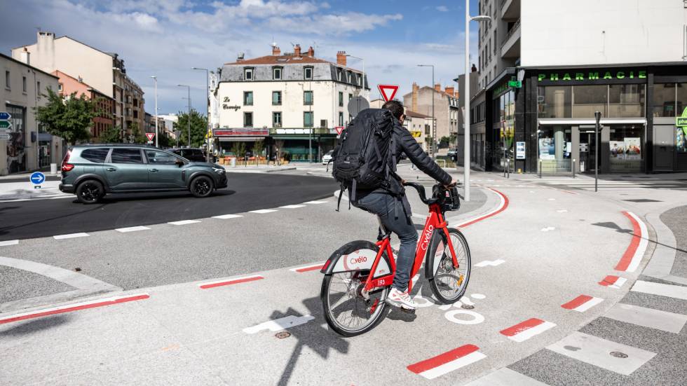 -Nouveau à Clermont, place des Carmes, le “carrefour à la hollandaise” est différent d’un carrefour classique car équipé d’une piste cyclable sécurisée séparant les vélos de la circulation automobile et des piétons.