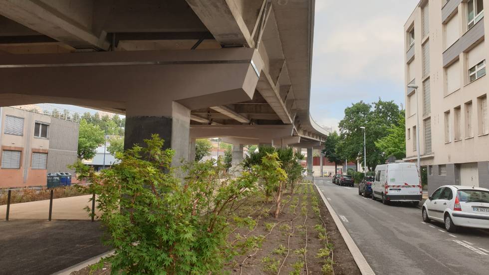 L'espace environnant a été transformé en espace vert et convivial, favorisant une meilleure infiltration des eaux de pluie, dans le cadre du concept de "ville éponge".