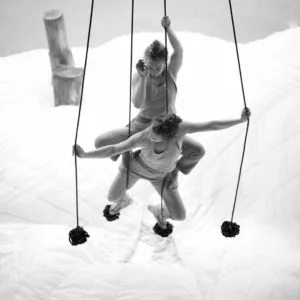 “Dans notre duo, il n’est pas question d’établir des rôles pré-définis comme on a l’habitude de le voir au cirque: il n’y a pas de « porteuse » ni de « voltigeuse », chacune reçoit le corps de l’autre. Nous défendons le travail d’un corps à corps en suspension ou l’une ne tient pas sans l’autre, un état de fluidité dans la prise de risque, entre équilibres et déséquilibres, imbrications et contrepoids” expliquent-elles. Portées par une musique onirique, les deux acrobates jouent ainsi de leurs similitudes et de leur complémentarité pour s’extraire d’un univers indocile.