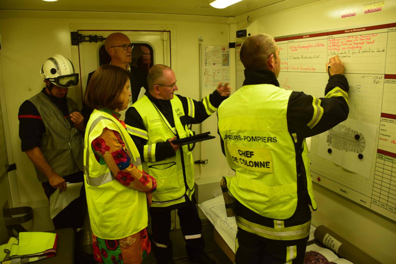Le poste de commandement est basé sur la place de la Poterne. C’est ici, dans un camion prévu à cet effet, que les décisions sont prises. Jean-Philippe Rivière, contrôleur général du SDIS, se veut rassurant : aucune victime n’est à déplorer.