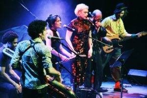Occupés à leurs différents projets respectifs, ils ont pris le temps d’affiner leur hommage : 11 titres dont 2 totalement inédits ainsi qu’une longue infusion dans la langue poétique et insoumise du poète. Ce n’était qu’une question de temps et le temps est advenu. Ensemble, ils s’extrapolent dans un cortège luxuriant de voix féminines qui enivrent, de réverb guitares, de guimbardes folk et de gros soupirs cuivrés où la langue créole bruisse de mille couleurs oniriques. Ils auraient souhaité être l’ami(e) qui tend la main au poète en perdition mais ils ne sont qu’un collectif de musiciens qui reprend ses morceaux… et c’est déjà très bien !