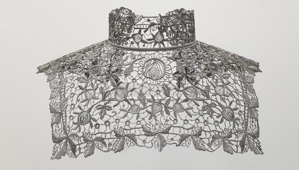 A.G : Moi je suis très heureuse parce que le résultat est assez incroyable. Je vois que les gens, qu’ils soient, ou non, issus du milieu de l’art, sont impressionnés par la restitution de la finesse des dentelles, du savoir-faire des dentellières, de la précision. Après j’ai demandé au designer orfèvre Pascal Perun de rajouter des imperfections parce qu’avec un outils numérique ont peut juste faire la reproduction d’un même motif, ce que je ne voulais pas. Il a donc rajouté de l’imperfection dans cette technologie qui normalement, n’est pas faillible. L’idée était de rajouter les erreurs que pouvaient faire les dentellières car un motif, même répété n’était jamais le même.