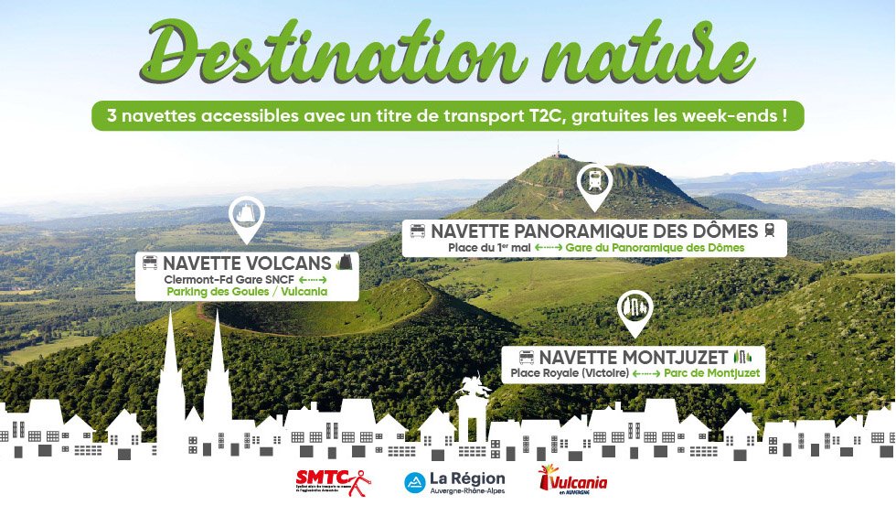 Les navettes Panoramiques des Dômes, Volcans et Montjuzet redémarrent ou s’adaptent pour la saison estivale 2022. Elles permettent d’accéder facilement à différents lieux touristiques, notamment le parc de Montjuzet, Vulcania ou la gare du Panoramique des Dômes mais aussi le parking des Goules ou la route des Dômes.