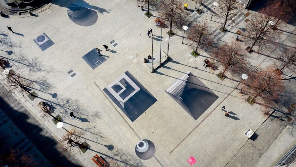 Un trompe l’œil spécifique, une expérimentation artistique en réalité augmentée. L’Américain Scott Hessels s’empare de la Place de la Victoire, épicentre clermontois ô combien chargé d’histoire. Il relie ainsi le passé du lieu avec la modernité la plus technologique. Parole à l’artiste : “Inversant le concept de sculpture publique, la production de l’œuvre a commencé par un balayage de la place par un radar à pénétration de sol (GPR), révélant les structures perdues depuis l’Antiquité sous la surface. Grâce à une expérience en réalité augmentée, le réel et le révélé fusionnent. Six illusions optiques grand format utilisent les formes géométriques des fouilles archéologiques en référence, métaphoriquement, aux ruines et aux maisons détruites sous chaque victoire. La pandémie de Covid-19 et la nécessité d’une expérience respectant les règles de la distanciation physique ont approfondi le sens cde l’œuvre au-delà des récits militaires ou historiques pour nos victoires personnelles et les pertes cachées endurées pour survivre à l’épidémie.”