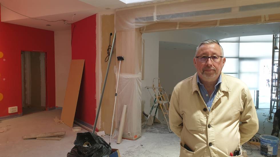 Philippe Pelade, cogérant de la SCOP accompagne le chantier avec attention. Il veille également à ce que la vie “normale” de la librairie puisse continuer, malgré les travaux.