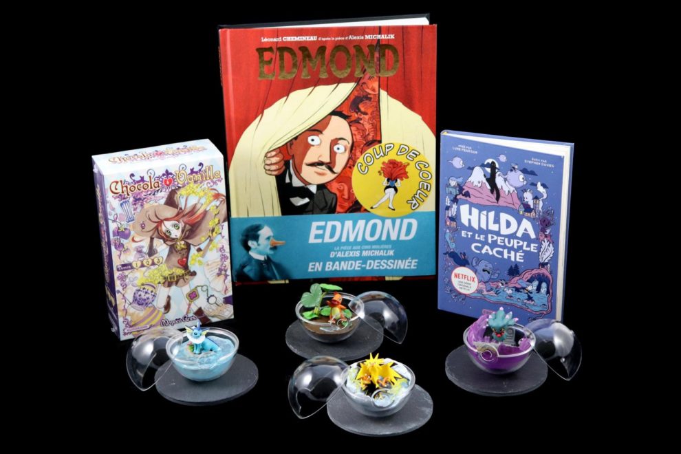 A conseiller aussi le roman illustré « Hilda et le peuple caché », adaptation de la célèbre bande dessinée aujourd’hui devenue une série TV à succès sur Netfix. Incontestablement dans l’air du temps…Noël pourrait également rimer avec les superbes coffrets-cadeaux mangas : débuts de séries ou séries complètes, toutes dotées d’un packaging attrayant. Une bande dessinée tout public, également, parmi les coups de cœur de Noël : « Edmond » de Léonard Chemineau. Elle entraîne le lecteur dans l’univers du théâtre, dans un scénario intelligent et ludique. L’équipe de la Librairie Momie, spécialiste de la BD, mangas, comics et des produits dérivés de la pop culture, aime beaucoup…