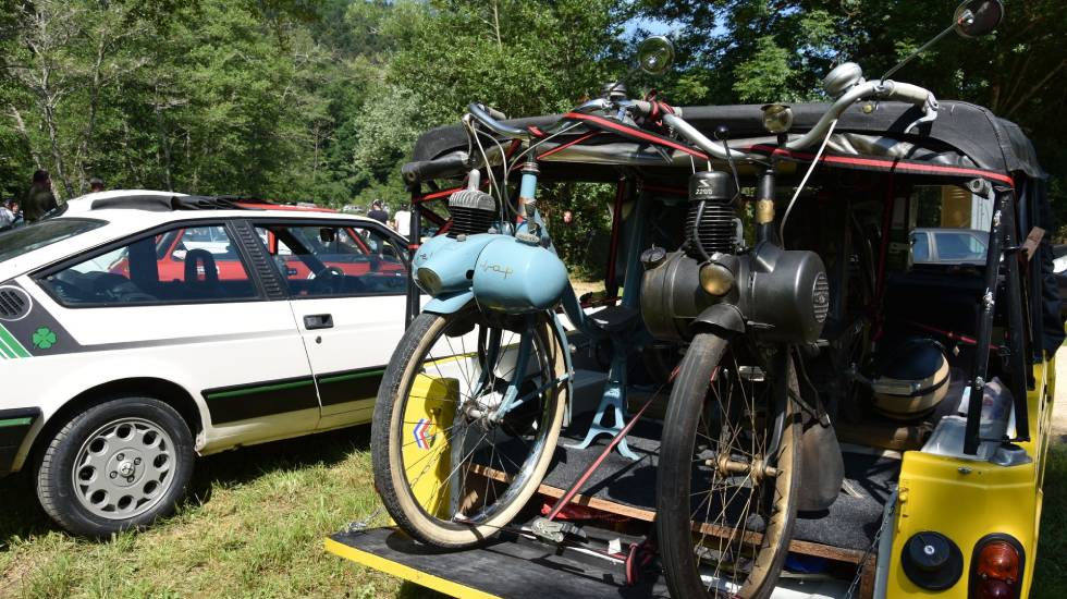 Chemin faisant, la manifestation Montfermy roule les mécaniques, a pris sa place dans les rendez-vous auvergnats de l’été. Voici revenu le temps de la 5e édition toujours basée sur un triptyque fonctionnant à merveille : mise en valeur du patrimoine roulant, découverte de la région des Combrailles et ambiance conviviale. Guy Lemaître, l’organisateur passionné d’automobile et de sport auto s’emploie chaque année à renouveler les participants pour présenter de nouveaux objets roulants et à imaginer un circuit découverte autour de Montfermy, petit bourg de 250 habitants où coule La Sioule, rivière au charme inimitable. Pour apprécier Montfermy roule les mécaniques il n’est pas obligatoire de rouler, certain préférant laisser leur véhicule exposé en statique et passer la journée sur un transat au bord de l’eau. Il n’est pas non plus obligatoire de posséder un véhicule de collection, les amateurs pouvant se satisfaire d’une exposition et d’un spectaculaire concours d’élégance.