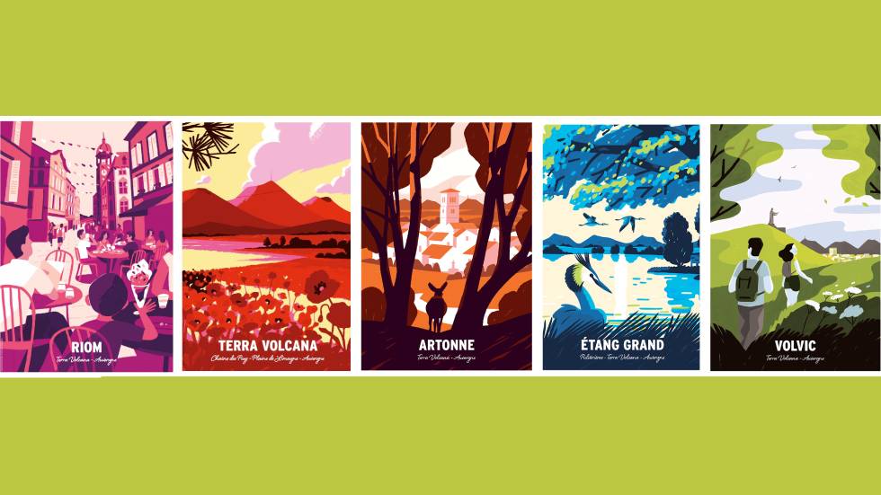 La responsable accueil et boutique de l’Office de tourisme Terra Volcana, a demandé à la directrice artistique lyonnaise Claire Monard de réfléchir à une nouvelle ligne artistique. Cette dernière connaît bien le territoire car elle est à l’origine de la conception graphique de plusieurs supports édités par l’Office de tourisme ces dernières années. Elle a fait appel à Brice Marchal, jeune illustrateur qui a travaillé avec un “œil neuf” sur la thématique. “Travailler ces affiches à la fois individuellement et comme une collection a été un véritable défi » selon cet artiste toulousain, pour qui, ces illustrations prennent tout leur sens quand elles sont envisagées comme une collection.