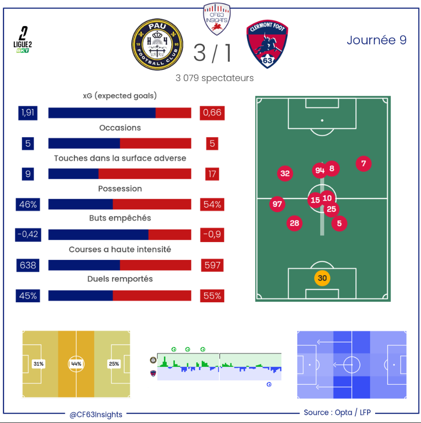 Comme souvent, le chiffre des expected goals (xG) parle de lui-même : 0,66 pour Clermont, 1,91 pour Pau.