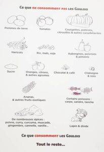 Depuis 1959, année de sortie du premier album Astérix le Gaulois, Uderzo et Goscinny et leur successeurs contribuent à donner une image erronée de la nourriture gauloise. Alors qu’une majorité de français pense que nos ancêtres se nourrissaient essentiellement de sangliers rôtis, la nouvelle exposition temporaire Saveurs gauloises, cuisiner, boire et manger chez les Arvernes présentée, par le Musée archéologique de Gergovie, apporte un sérieux démenti. « Le Gaulois a une alimentation essentiellement composée de végétaux à presque 80% » explique Arnaud Pocris commissaire de l’exposition. « C’est un cultivateur, un éleveur qui va manger essentiellement des céréales, des légumineuses, quelques légumes et de la viande, mais de la viande d’animaux d’élevage. Chez les Arvernes, c’est principalement du bœuf, du porc, du mouton, de la chèvre et de manière anecdotique un peu de cheval, de chien et aussi un peu de volaille. Cette viande reste en petite quantité et issue de l’élevage, la chasse représentant à peu près 1% de la viande consommée. Dans ces animaux chassés il y a essentiellement le lièvre, le chevreuil, le cerf et quasiment jamais de sanglier… ». Déjà à l’époque de Vercingétorix, on notait quelques différences régionales dans l’alimentation en particulier sur la consommation de viande. Par exemple les peuples du nord mangeaient davantage de cheval que les Arvernes, mais le ratio végétal-animal était le même partout.