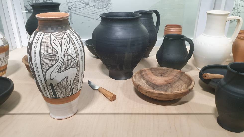 La scénographie de l’exposition Saveurs Gauloise présente de nombreuses illustrations et des citations : Athénée (170/223 de n. è.) disait “Le jambon gaulois est le meilleur”. Gault et Millau, n’ont finalement rien inventé, largement devancés par l’auteur des Deipnosophistes compilation de textes d’auteurs antiques portant sur l’univers culinaire. Pour Arnaud Pocris mettre en avant des citations grecques ou romaines permet de faire un focus sur un élément particulier sans avoir la certitude qu’il s’agit d’une généralité. “Il se trouve que l’on retrouve dans de gros récipients en céramique des traces de salaisons, donc on peut savoir qu’il y a eu un traitement par le sel pour la conservation et emmètre l’hypothèse que l’on a fait du jambon ou salé d’autres parties du cochon” Le jambon gaulois était-il le meilleur parce qu’il était bien conservé ou parce qu’il était meilleur au goût ? Difficile à dire… mais avec un peu de chauvinisme on peut s’arranger avec l’histoire, par contre une chose est sûre, à l’époque le vin d’Auvergne n’existait pas, on buvait de la cervoise, ancêtre de la bière qui ne contenait pas de houblon.
