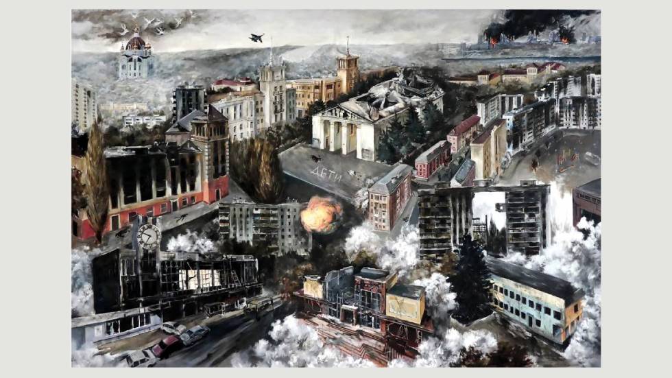 L’exposition présente également Marioupol 2022 tableau d’Olesia Trofymenko peint à l’occasion de la sortie du film documentaire Mariupol 2022 ainsi qu’une œuvre réalisée à Clermont par Olesia Trfymenko, une artiste de Krementchouk, la ville jumelée à Clermont.