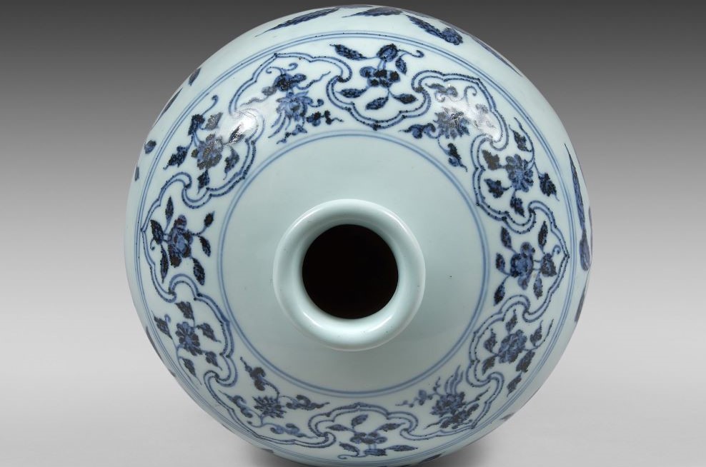 De forme meiping, ce vase en porcelaine à décor en bleu sous couverte d’un registre de dix fruits dans leur feuillage, a été découvert dans les environs de Clermont et il sera présenté en vente avec une estimation de 1million à un million et demi d’euros. C’est dire tout à la fois sa valeur et sa rareté.
