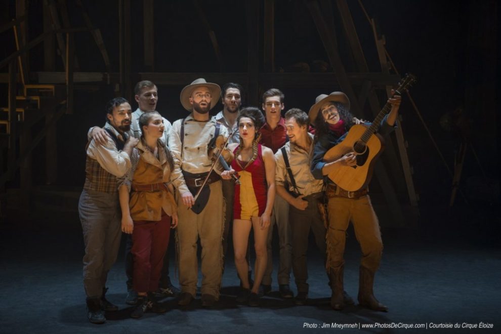 Dès les années 90, le Cirque Eloize participe, avec d’autres, au renouveau des arts du cirque en créant des passerelles avec d’autres formes artistiques, comme le théâtre ou la danse. Il mêle subtilement ces disciplines aux pratiques circassiennes plus traditionnelles comme le jonglage ou les acrobaties. “L’inspiration pour ce nouveau spectacle vient de notre force motrice, celle qui nous anime depuis bientôt 25 ans” confirme le président, directeur artistique et directeur de la création, qui répond au nom savoureux de Jeannot Painchaud. Dans Saloon, une autre dimension se révèle déterminante. La musique folk est omniprésente. On reconnaît des airs de Johnny Cash, Patsy Cline ou Lead Belly, tout en découvrant des compositions originales d’Eloi Painchaud. Dès lors, tout est en place: le voyage commence, un voyage au Far West, un voyage acrobatique et poétique. Quel cirque!